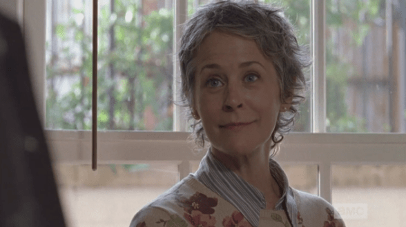 jl carol beams at tobin Published March 16, 2015 at 588 × 329 in The Walking Dead, Season 5, Episode 13, “Forget” JL Carol gives Tobin a sweet smile, and thanks him for the kind offer.