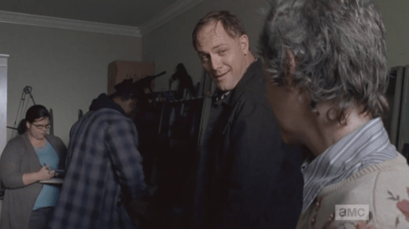 man sez i’ll teach ya Published March 16, 2015 at 590 × 331 in The Walking Dead, Season 5, Episode 13, “Forget” Tobin smiles at Carol, introduces himself, and offers to teach Carol to shoot, any time. Better safe than sorry.