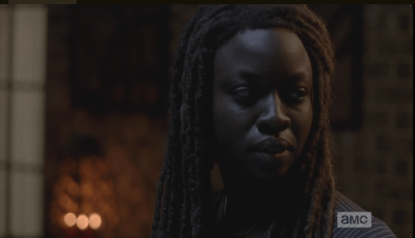 Michonne turns to Abraham, asks him, “How much have you had to drink?” Abraham laughingly replies that he is a large man, and he’s had many beers to make up for that, and in doing so, has realized that things have worked out pretty damn well for him. He turns to Michonne, asks her, “What have you done?” Michonne thinks. “I put on this dress,” she offers. Abraham smiles at her. “Try again,” he says.