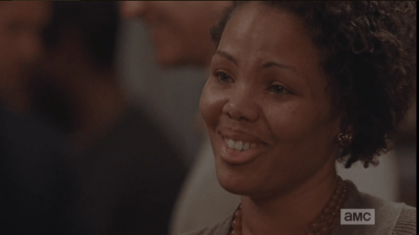 nice lady says i’m worried i’ll cook something you hate Published March 17, 2015 at 596 × 334 in The Walking Dead, Season 5, Episode 13, “Forget” Some nice lady approaches Sasha, asks her what her favorite meal is…the nice lady wants to cook one for each of the new arrivals, and she is worried that she’ll cook something Sasha will hate…