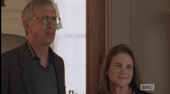 reg meets rick Published March 16, 2015 at 595 × 329 in The Walking Dead, Season 5, Episode 13, “Forget” Deanna presents her prize constable, Rick, to her husband, Reg, builder of the wall.