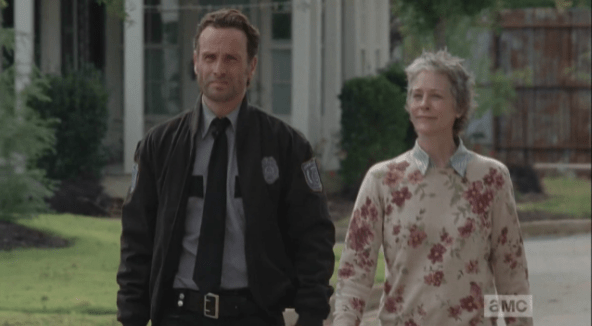 Rick volunteers himself for the job, but Carol points out that his absence would be noticed. Rick adds that Daryl is out, as they are watching every move he makes, these days. That leaves Carol, who smiles and says that the good thing about this place is that “I can be invisible again.”