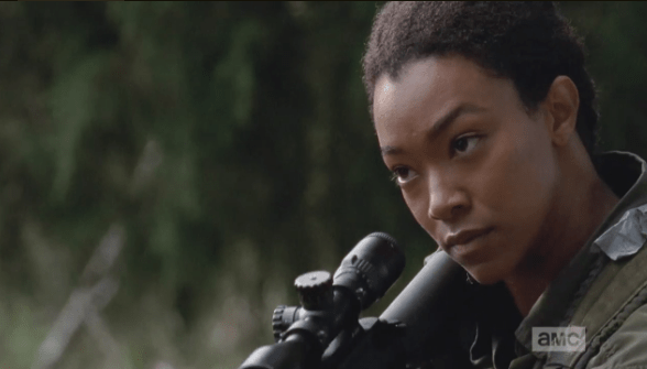 sasha scopes 3 Published March 13, 2015 at 588 × 335 in The Walking Dead, Season 5, Episode 13, “Forget” …so Sasha sets her sights on the next target.