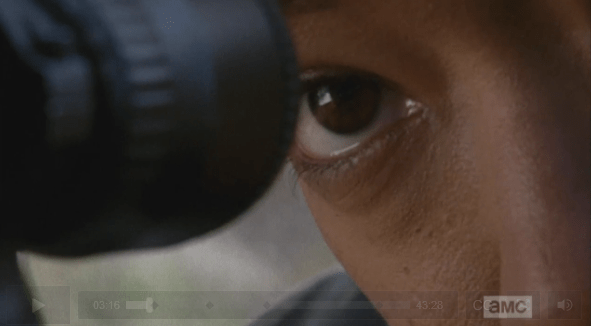 sasha shooting and buggin 2 Published March 13, 2015 at 591 × 326 in The Walking Dead, Season 5, Episode 13, “Forget”
