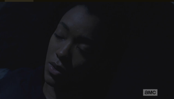 sasha’s had enough Published March 13, 2015 at 588 × 335 in The Walking Dead, Season 5, Episode 13, “Forget” Sasha’s had enough of trying to sleep surrounded by the captured frozen smiles of dead people in better times.