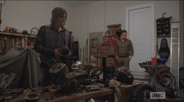 welcome to daryls world 2 Published March 17, 2015 at 591 × 329 in The Walking Dead, Season 5, Episode 13, “Forget” Aaron continues, telling Daryl that while he, Aaron, always wanted to teach himself how to work on, and build, the motorcycle, he has a feeling that Daryl already knows how to do this.