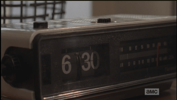 alarm clock Published April 8, 2015 at 598 × 338 in The Walking Dead, Season 5, Episode 15, “Try In the next scene, we see an alarm clock strike 6:30 am…