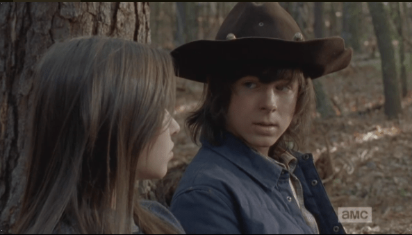 carl says he can’t forget Published April 13, 2015 at 593 × 339 in The Walking Dead, Season 5, Episode 15, “Try “I can’t forget,” Carl replies. He turns to Enid. “I dream about it, being in the forest…with them.”
