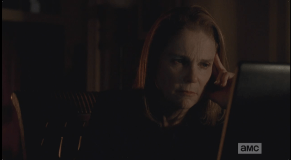 deanna watches the video Published April 7, 2015 at 599 × 331 in The Walking Dead, Season 5, Episode 15, “Try We see Deanna watching the video of her interview with Nicholas…