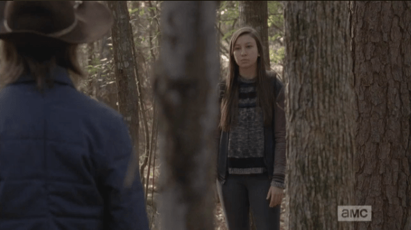 enid emerges Published April 13, 2015 at 592 × 332 in The Walking Dead, Season 5, Episode 15, “Try Enid emerges from behind a tree. “Oh, come on,” she says. “People always die…you know that.”