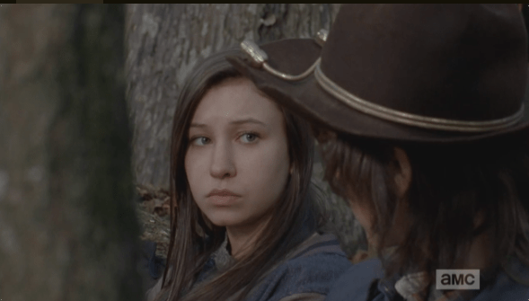enid looks at carl Published April 13, 2015 at 589 × 335 in The Walking Dead, Season 5, Episode 15, “Try Enid looks at Carl, says nothing. She seems to want to tell him, but then, the telltale snarl of walkers approaching interrupt their sweet moment.