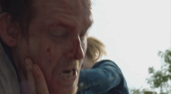mcbeaty beatdown 11 Published April 18, 2015 at 594 × 326 in The Walking Dead, Season 5, Episode 15, “Try …but McBeaty backhands her swiftly and savagely, knocking Jessie onto the pavement.