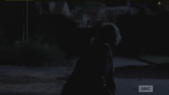 night walker comes up on gates Published April 6, 2015 at 592 × 332 in The Walking Dead, Season 5, Episode 15, “Try As Sasha struggles in the watchtower, You Got A Little Something On Your Face, There, Walker comes, snarling, out of the woods, turns….