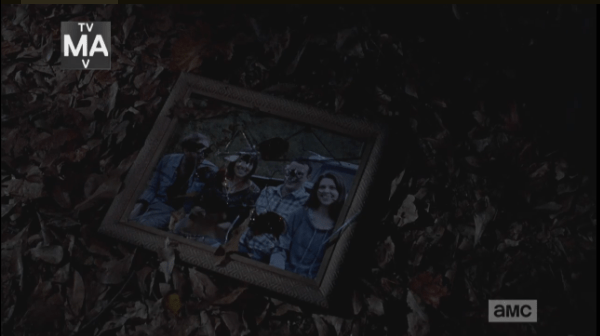 night walker steps on framed pic 2 Published April 2, 2015 at 600 × 336 in The Walking Dead, Season 5, Episode 15, “Try …and as it lurches off, we recognize the picture as one that Sasha had used as target practice, not far from the gates of Alexandria.