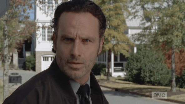 rick has finally found his words Published April 18, 2015 at 592 × 333 in The Walking Dead, Season 5, Episode 15, “Try Rick turns towards Jessie’s house. It seems he had finally found his words. He strides towards the house.
