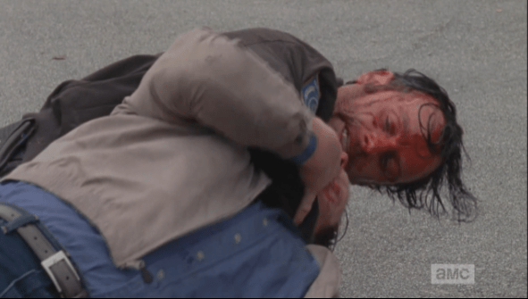 rick’s final threat to mcbeaty Published April 18, 2015 at 591 × 335 in The Walking Dead, Season 5, Episode 15, “Try Rick Smash! can’t resist growling one last threat to McBeaty…if McBeaty even tries to talk to Jessie again, he’ll kill him.