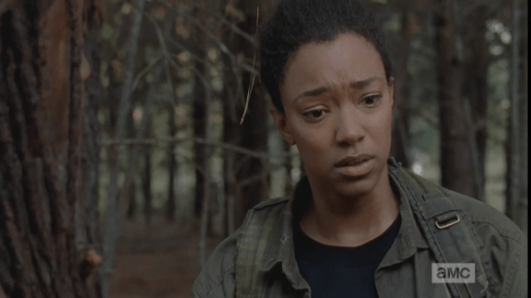 sasha rides the wave of sadness Published April 17, 2015 at 597 × 335 in The Walking Dead, Season 5, Episode 15, “Try Sonequa Martin-Green plays it beautifully as Sasha silently rides out a wave of realization and sadness at this statement. Nobody says anything. After a moment, Sasha stalks off, Rosita following her, after exchanging a last look with Michonne.