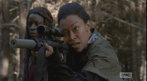 sasha says no you do, i dont Published April 16, 2015 at 597 × 331 in The Walking Dead, Season 5, Episode 15, “Try “Naw, you do…I don’t,” says Sasha, looking full-on crazy as she raises her rifle and peers through the scope, ready to massacre some walkers.