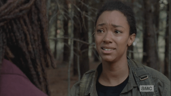 sasha starts to crack Published April 17, 2015 at 593 × 333 in The Walking Dead, Season 5, Episode 15, “Try Sasha knows all this, on some level, and her anger starts to give way into its true form: grief. Her face softens as she looks at Michonne, grappling for the words. “Noah…” Sasha begins.