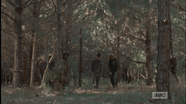 sizable group of walkers approach Published April 16, 2015 at 599 × 335 in The Walking Dead, Season 5, Episode 15, “Try Ahead, in a clearing, a sizable group of walkers approaches…