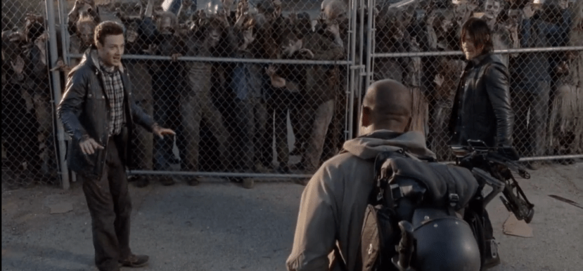 aaron says thank you Published May 23, 2015 at 1094 × 510 in The Walking Dead, Season 5, Episode 16, “Conquer” Aaron turns to Morgan, ecstatic. “That was…” he begins, unable to find the words. “Thank you,” he says, simply.