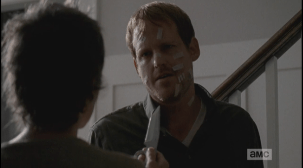 carol knife mcbeaty 1 Published April 28, 2015 at 598 × 333 in The Walking Dead, Season 5, Episode 16, “Conquer” I dunno, McBeaty…maybe next time, you should try another angle…that line doesn’t seem to work very well in your favor.