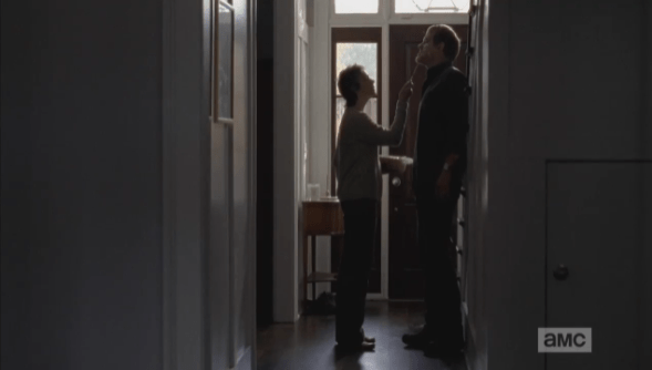 carol knife mcbeaty 5 Published April 28, 2015 at 589 × 334 in The Walking Dead, Season 5, Episode 16, “Conquer” Carol holds the knife under McBeaty’s chin, not letting up. “They’d believe you tried to hurt me…they’d definitely believe that,” Carol informs the hyperventilating man in front of her.
