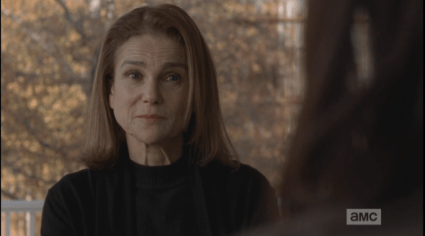 deanna looks at maggie Published April 27, 2015 at 599 × 333 in The Walking Dead, Season 5, Episode 16, “Conquer” Deanna raises her eyebrows at this last part. “The things he’s lost?” she asks, softly.