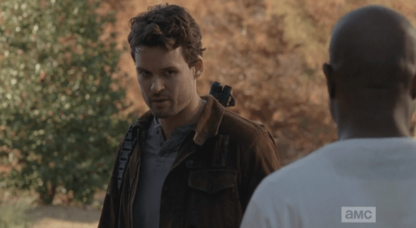 gabriel returns gate 2 Published May 24, 2015 at 589 × 324 in The Walking Dead, Season 5, Episode 16, “Conquer” Spencer looks shyly at Gabriel, confesses, “I don’t really have anyone here, right now, if you know what I mean.”