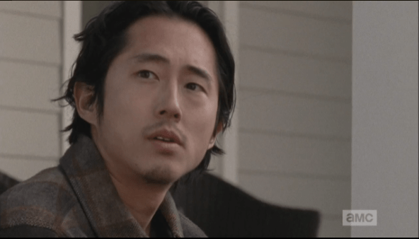 glenn sees nicholas climbing the fence Published April 28, 2015 at 592 × 338 in The Walking Dead, Season 5, Episode 16, “Conquer” After Maggie leaves, Glenn sits a moment more on the porch, thinking…a sudden noise makes him look up, and he sees…