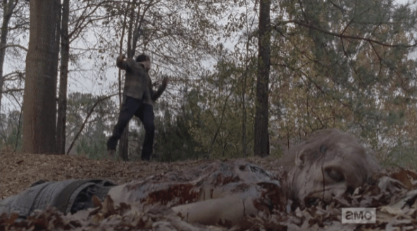 glenn shot 2 Published April 28, 2015 at 592 × 328 in The Walking Dead, Season 5, Episode 16, “Conquer” Glenn falls to the ground.