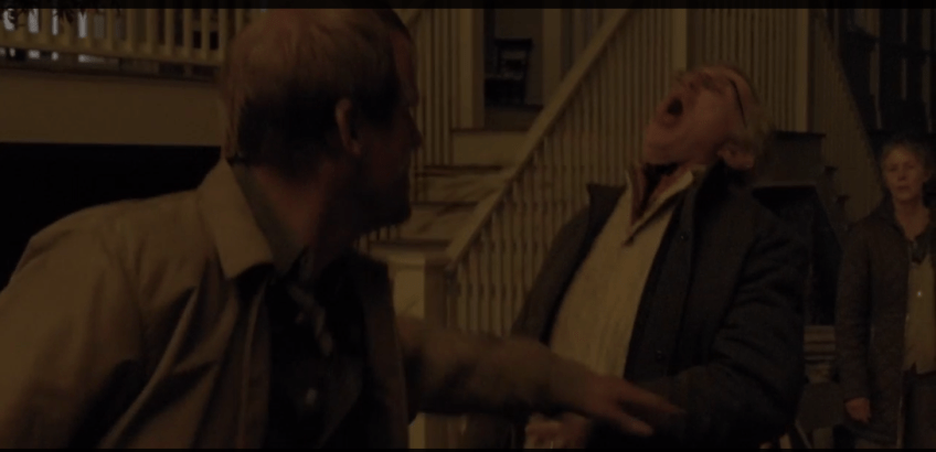 mcbeaty slashes reg Published May 26, 2015 at 1089 × 527 in The Walking Dead, Season 5, Episode 16, “Conquer” McBeaty pushes Reg, then slashes his throat with the katana. Horrible. Just horrible.
