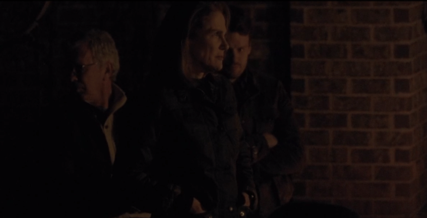 meeting 1 Published May 25, 2015 at 1010 × 516 in The Walking Dead, Season 5, Episode 16, “Conquer” Deanna Monroe’s face looks grim as she waits with Reg, Spencer.