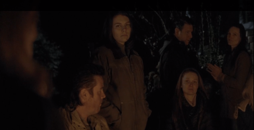 meeting 2 Published May 25, 2015 at 1079 × 555 in The Walking Dead, Season 5, Episode 16, “Conquer” Maggie is trying to keep cool, but glances over towards Deanna. You can tell she’s worried. It doesn’t look good for Rick, his not being there. And where is Glenn?