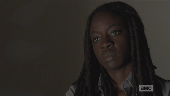 michonne ain’t buying it Published April 26, 2015 at 590 × 335 in The Walking Dead, Season 5, Episode 16, “Conquer” Michonne ain’t buying it, and neither am I.