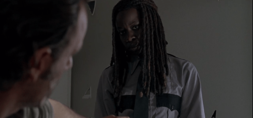 michonne asks you think i’d try to stop you Published May 24, 2015 at 1092 × 510 in The Walking Dead, Season 5, Episode 16, “Conquer” Michonne tosses the constable’s jacket on the bed, fixes Rick with a look. “You think I’d try to stop you?” she chides gently.
