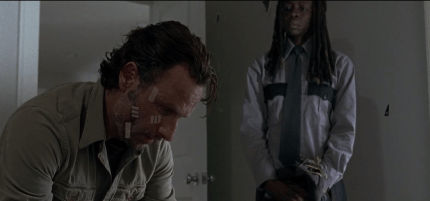 michonne rick bf meeting 2 Published May 24, 2015 at 1089 × 510 in The Walking Dead, Season 5, Episode 16, “Conquer” “Daryl, Carol, and me…we worked it out together. Carol took three guns from the armory. I still have one, she still has one.” Rick turns to look at Michonne, who is digesting all this information.