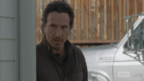 nicholas lurker Published April 28, 2015 at 595 × 334 in The Walking Dead, Season 5, Episode 16, “Conquer” Nicholas Lurker watches Glenn, hatred in his eyes…he surely has his handgun on him.