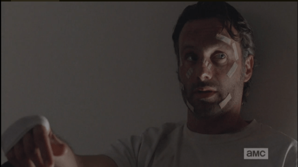 rick got told Published April 27, 2015 at 598 × 337 in The Walking Dead, Season 5, Episode 16, “Conquer” In response to Rick’s drama king “Well, we’re here” comment, Michonne regards him cooly, replies, “You just said you weren’t.” Rick looks at her like, “D’oh!” Oooo, burn, Rick Grimes!