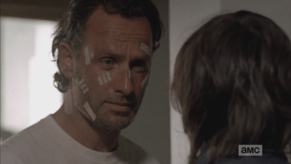 rick is a hot dad Published April 28, 2015 at 593 × 335 in The Walking Dead, Season 5, Episode 16, “Conquer” Rick has some of his finest (and I mean finest) moments when he is getting schooled by his son.
