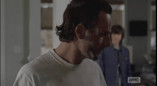 rick looks back at carl Published April 28, 2015 at 599 × 329 in The Walking Dead, Season 5, Episode 16, “Conquer” “That’s what it is, now, right? Home?” Carl asks. The question stops Rick in his tracks, and he turns halfway back towards his son.