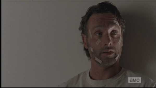 rick says and here we are Published April 27, 2015 at 599 × 338 in The Walking Dead, Season 5, Episode 16, “Conquer” Rick looks around at the others in the room. “And, here we are,” he says.
