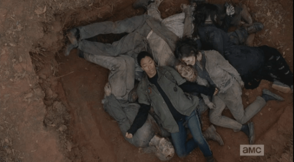 sasha cleaning up walker bodies 5 Published April 27, 2015 at 596 × 329 in The Walking Dead, Season 5, Episode 16, “Conquer” …and the shot pans out as Sasha closes her eyes, opens her arms, and surrenders to the strange peace of lying on top of the fallen walkers.
