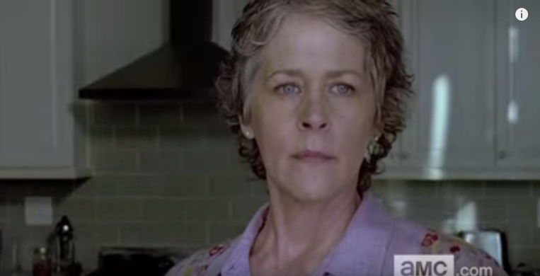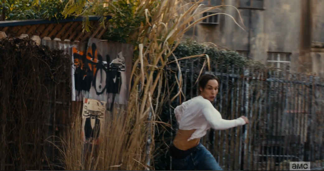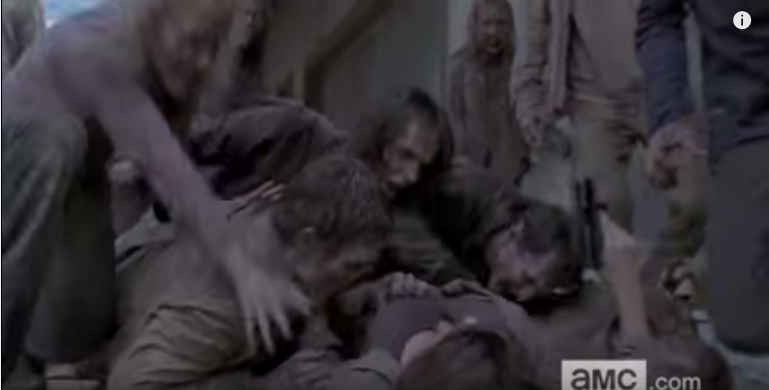When I first watched the trailer, I thought the poor woman being overrun, and most probably chomped, by the horde of walkers was Maggie, pinned, helpless, screaming on the sidewalk, with so many walkers clawing and crawling up her enviable curves. It was really hard to tell who it was…all I could tell was that the poor overrun, about-to-be-chompedwoman had dark hair, beautiful eyebrows, and that she was one of our key characters…a beloved member of our sweet gang who seemed about to be done for.
