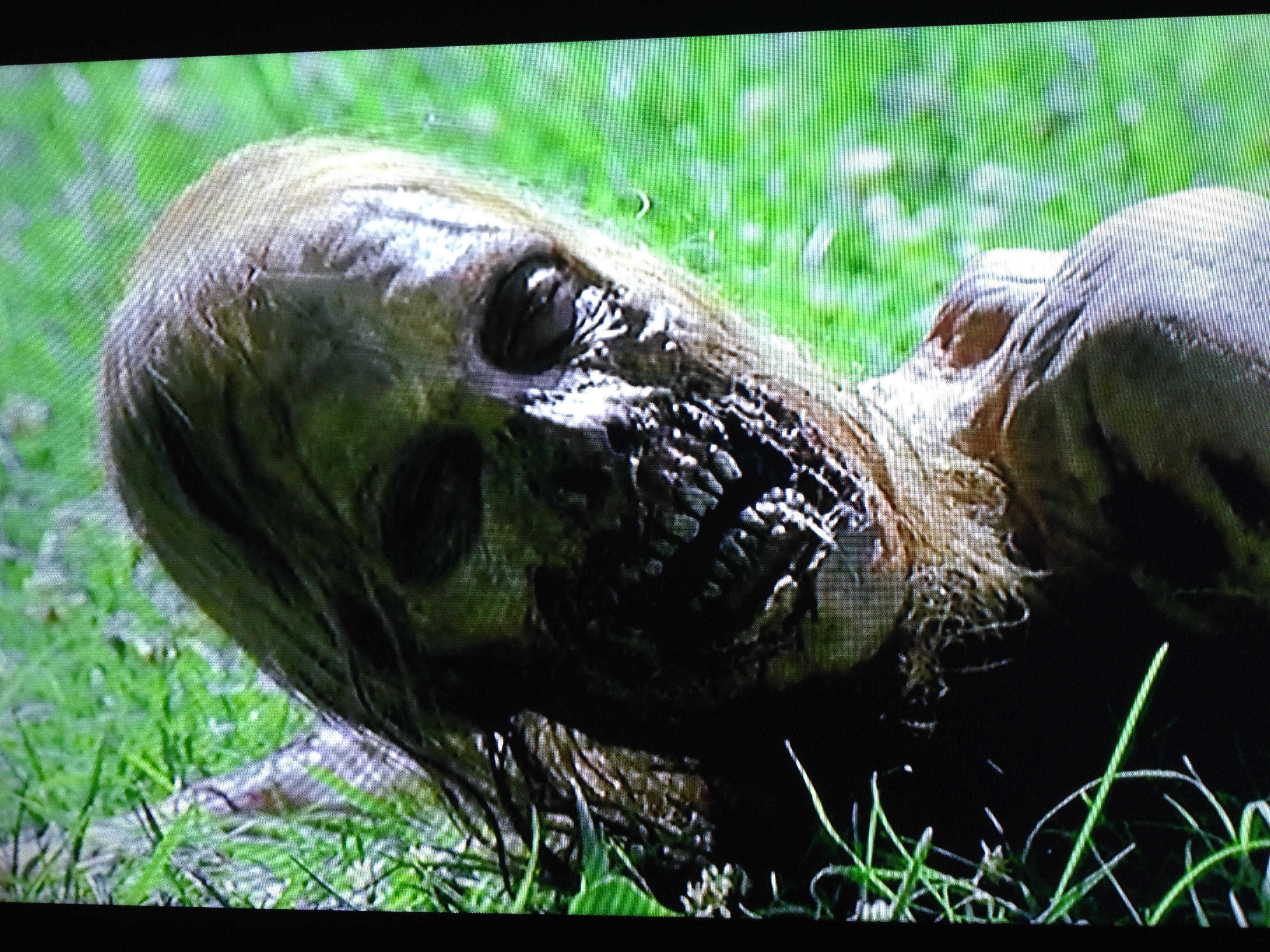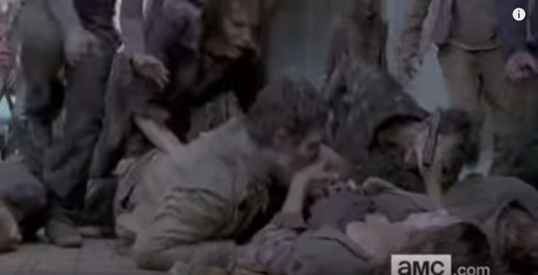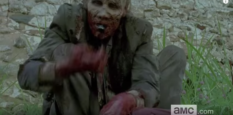 We see yet another horrible image of a walker feasting on some poor somebody…