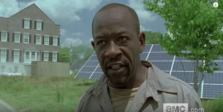 We recognize this exchange between Rick and Morgan from Season 3’s heartbreaking episode, “Clear,” when Rick, Michonne, and Carl return to the Grimes’ hometown sheriff’s station in search of weapons, and find Morgan holed up with an arsenal of weaponry from the sheriff’s station, broken, alone, and teetering on the brink of madness from the loss of his son, Duane.
