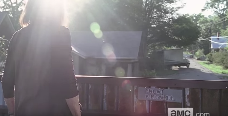 We see a shot of what looks like Deanna, standing within the relative safety of Reg’s steel wall, with a handmade sign commemorating Panel #1 of the wall, and signed Reg Monroe.