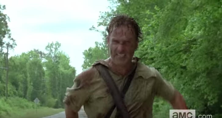 The TWD Season 6 trailer begins with a shot of Rick Grimes, running hard in the blazing sun, through simmering heat waves, down an empty road. Is he running for his life, or is he just doing some anger-management-interval-training, fartlek-style?