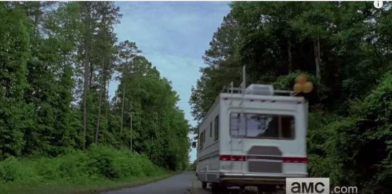 We see a shot of Rick, looking all crazy, driving what I think is the R.V….
