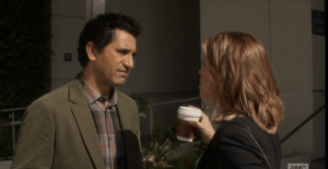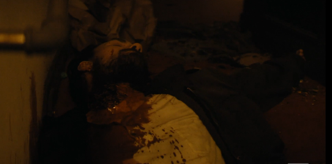 With Gabriel standing in the background, we see Deanna’s face, dull with shock and grief, as she stares down at the pool of her beloved husband’s blood…